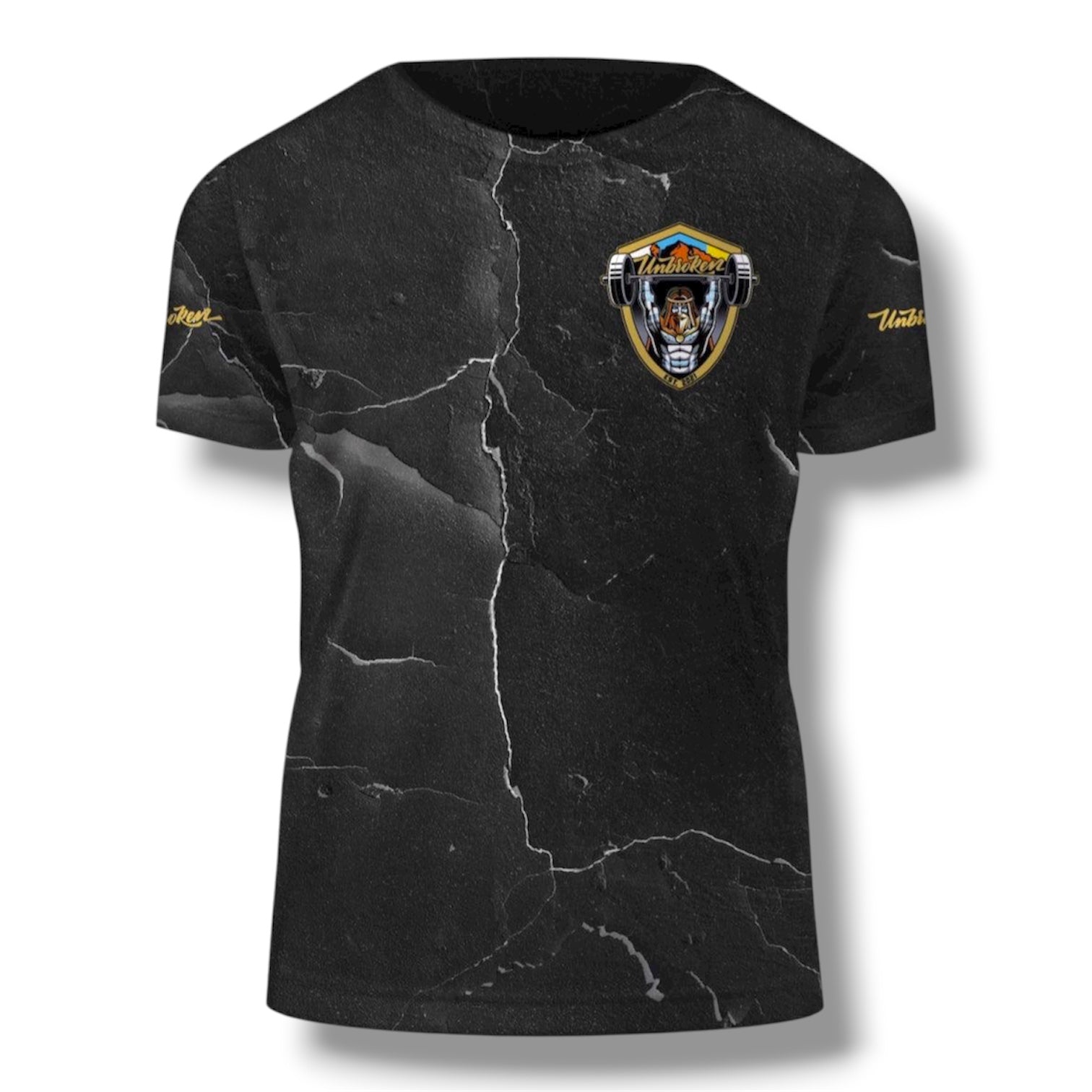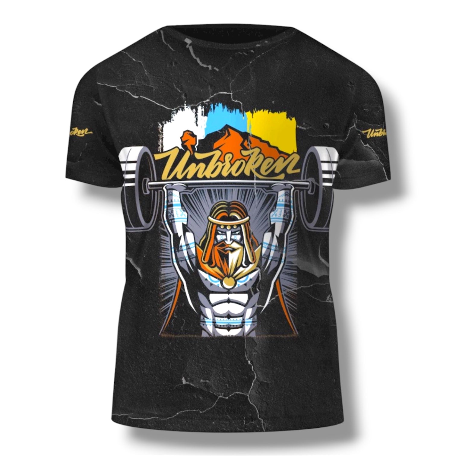 Camiseta con nuestro guanche Unbroken, sublimada en un fondo espectacular que hacen de esta camiseta una pieza brutal. Tejido superligero y cómodo, preparada para mandártela entrenando o con tu outfit diario.