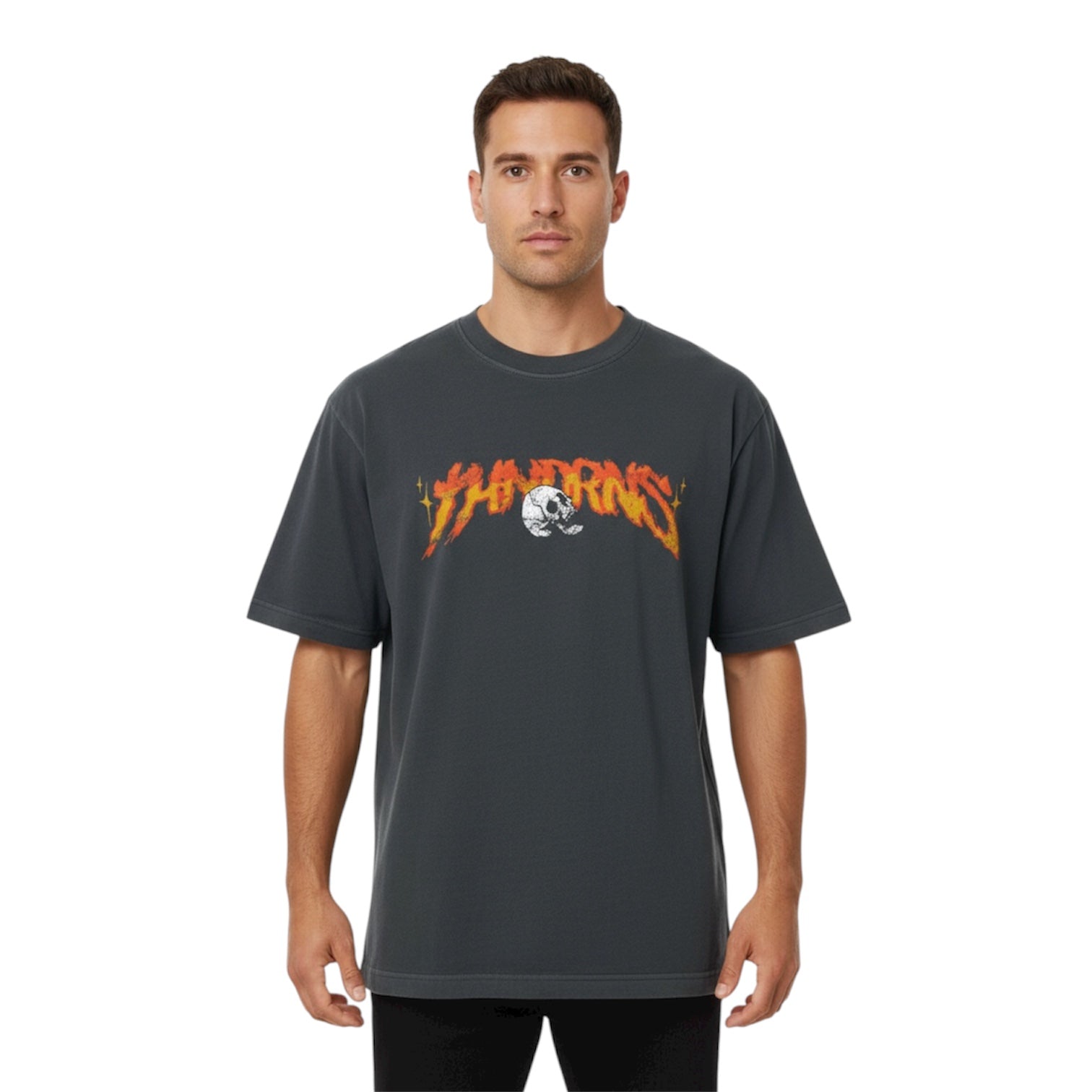 T-shirt oversize unissexo Thundernoise confecionada em jersey simples com algodão orgânico penteado e fiado. A sua estrutura leve proporciona um ótimo conforto e alta qualidade. Caimento relaxado. Decorada com um grande estampado nas costas e um pequeno detalhe na frente.