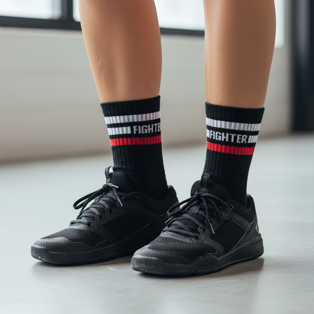 Meias Fighter da Train Like Fight. Corra, salte e até voe se quiser, graças à sua construção leve e ao seu ótimo ajuste.